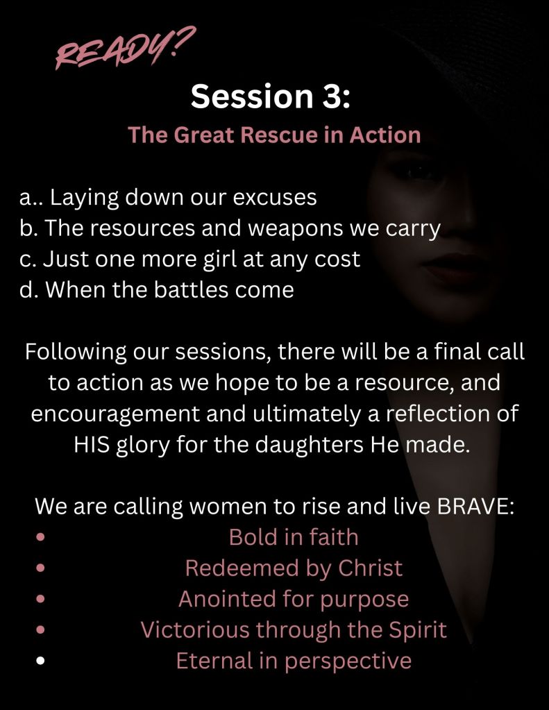 This workshop is designed to challenge, equip and put into action the rescue mission. This is: The BRAVE War Room.